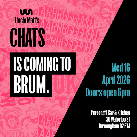 Uncle Matt’s Chats is coming to Birmingham. It’s a slightly strange event where a hat brand gathers a room full of strangers in a bar and says, “Right… anyone want to talk about mental health?”